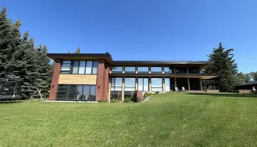 Welcome to your dream oasis! This luxury acreage, gracefully perched on a hillside, offers breathtaking views of the Elbow River and the majestic Rocky Mountains. This modern, sprawling family home features a stunning walkout design and soaring vaulted ceilings that create an open, airy atmosphere. Expansive windows flood the living spaces with natural light, allowing you to fully immerse yourself in the panoramic views of the surrounding landscape. Step outside onto the generous deck, perfect for entertaining or simply enjoying the serene beauty of nature. The home exudes elegance with its exquisite natural stone accents and a dream kitchen that will inspire your culinary adventures. Experience the perfect blend of luxury and tranquility in this remarkable hillside haven.